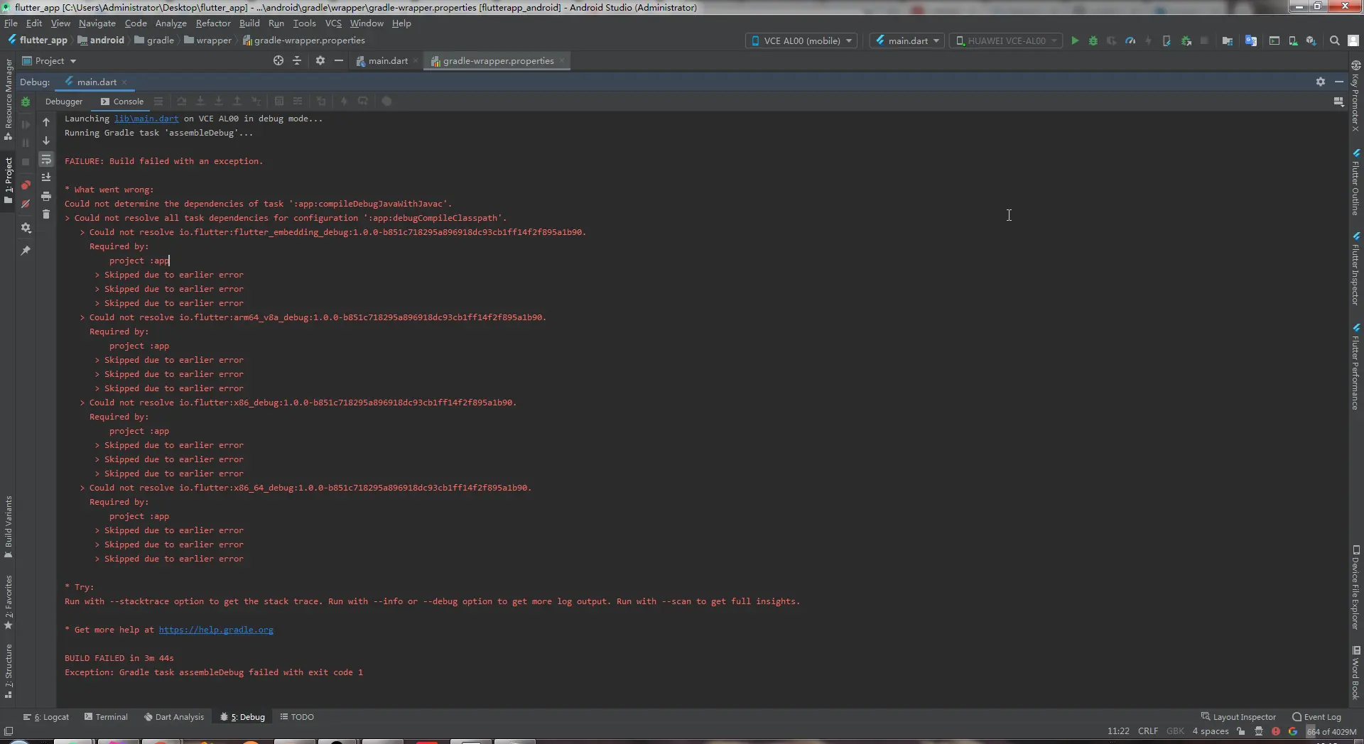 Exception: Gradle task assembleDebug failed with exit code 1