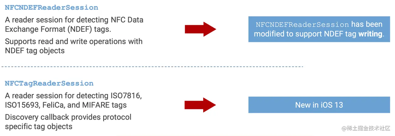 - iOS13系统基本支持目前已经部署的NFC协议的读写操作。