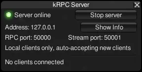 注意,使用这个项目的前提是先下载好游戏。而且在运行脚本的时候,游戏必须在运行着,并与客户端保持连接。怎样才能和客户端连接呢?你还需要下载kRPC服务器插件: