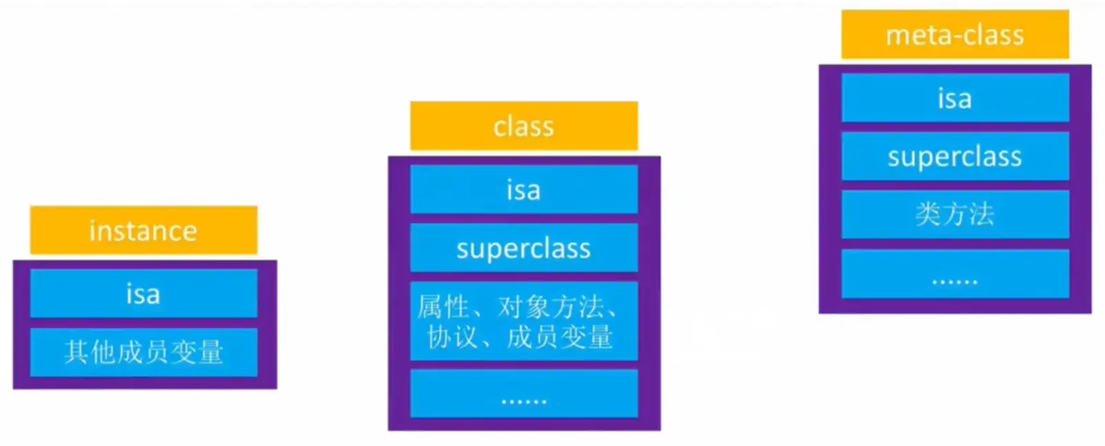 class的isa指针指向meta-class。