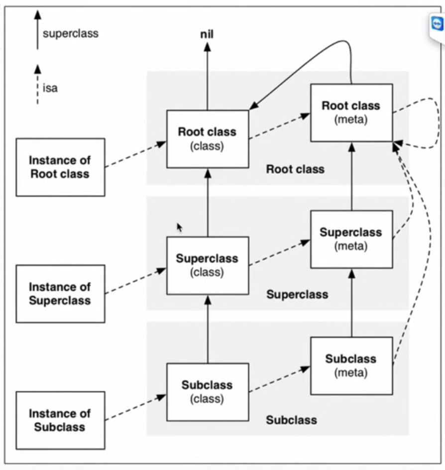 - isa找到meta-class,方法不存在,就通过superclass找父类