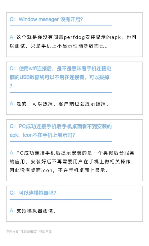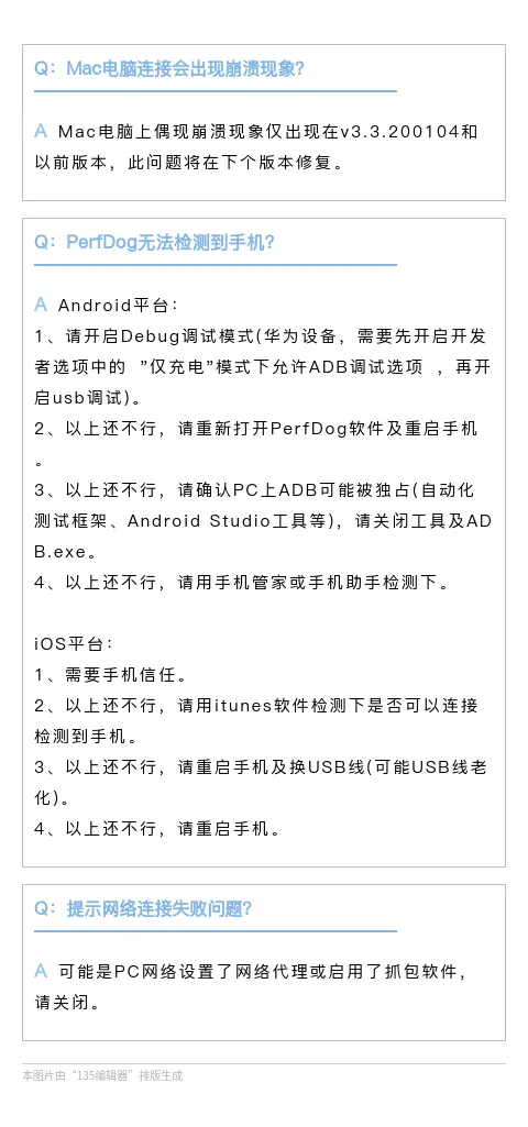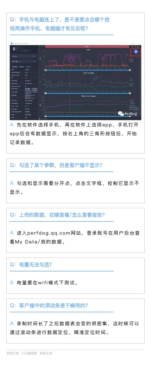 FAQ | PerfDog常见问题解答第一期 腾讯WeTest 2020-06-01 216 阅读1分钟 为了更好地服务PerfDog用户,解决大家在使用PerfDog中遇到的问题,我们将定期整理常见问题集与大家分享,并持续打磨我们的产品,为大家提供更优质的服务。以下为本期的“常见问题整理”,如果您在使用PerfDog的过程中遇到任何问题,欢迎加入QQ交流群:228756853 或在官方论坛中提问,我们会第一时间为您解答,感谢您对PerfDog的支持与信任。