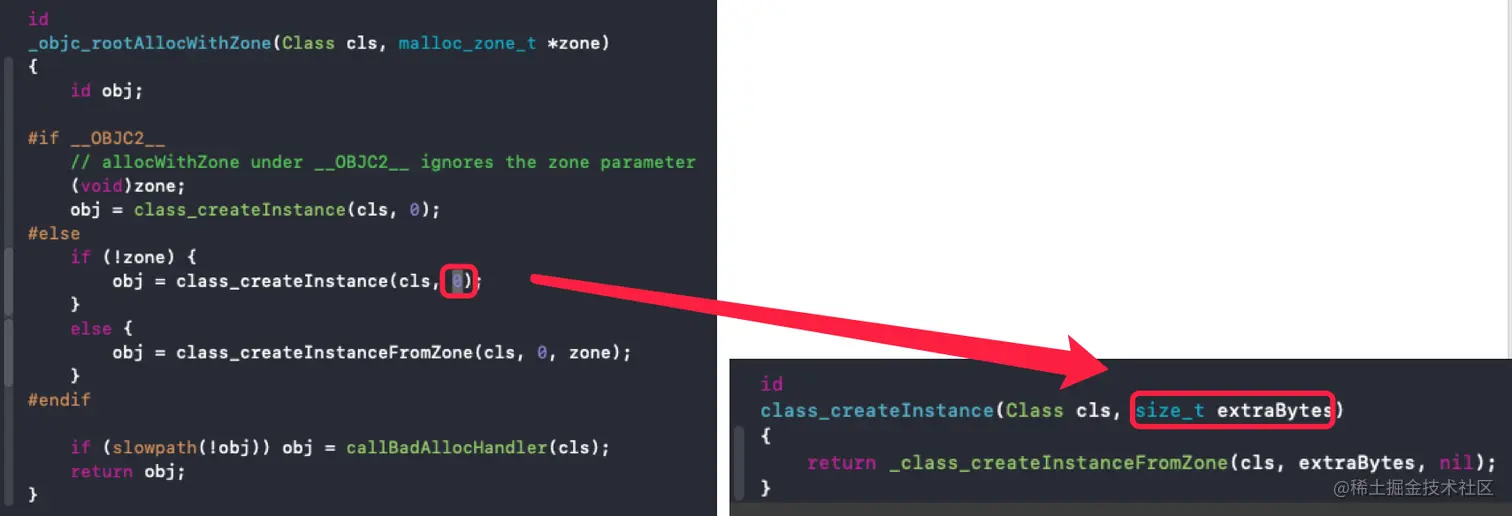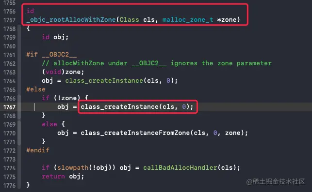 我们知道 alloc 方法最终会调用 allocWithZone,所以源码中找到方法 _objc_rootAllocWithZone