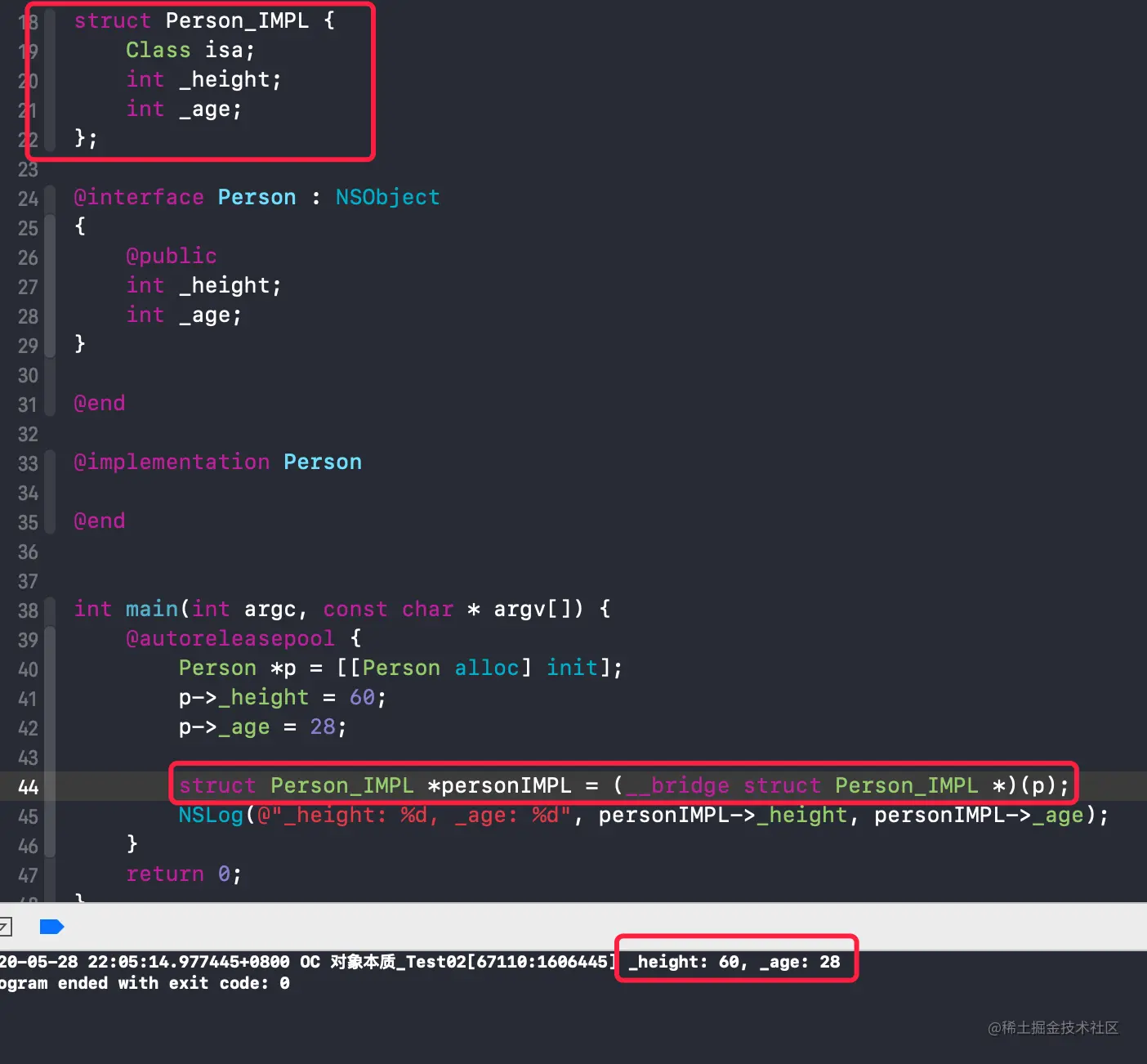 NSLog(@"Person_IMPL - sizeof: %zd", sizeof(struct Person_IMPL));