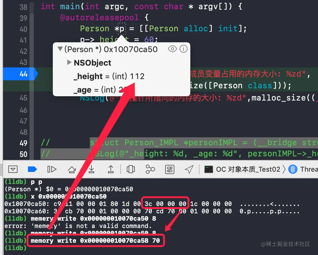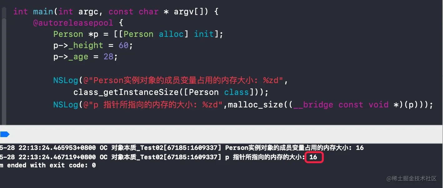 OC 对象本质_Test02[80050:1932487] person - malloc_size: 16