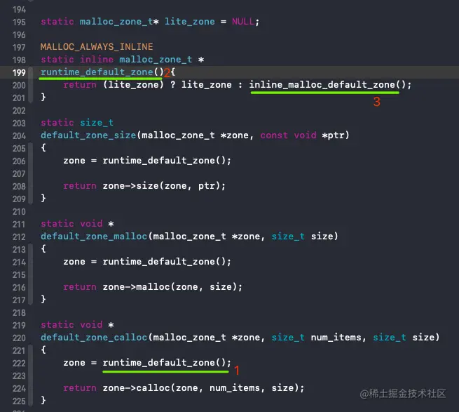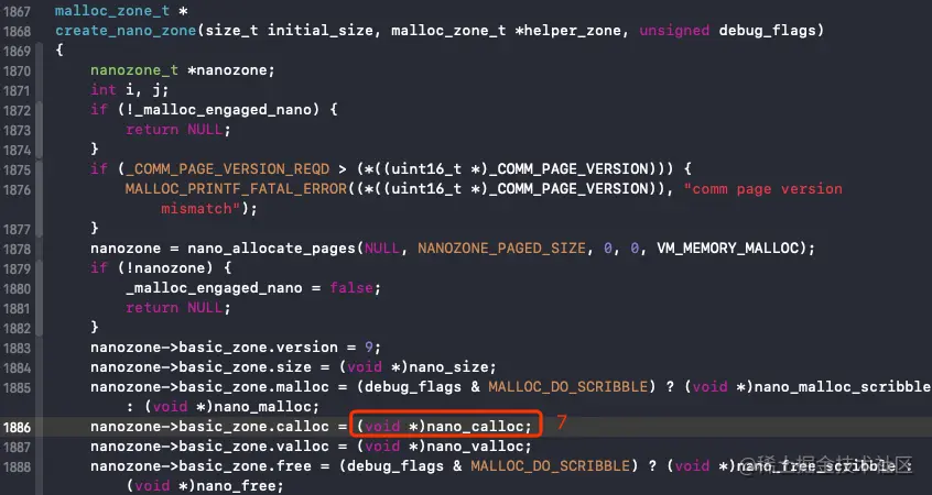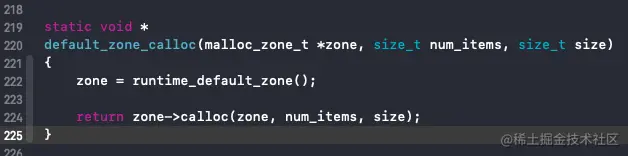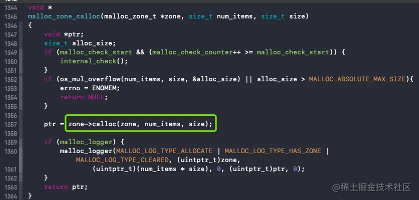 该函数内部调用 malloc_zone_calloc()