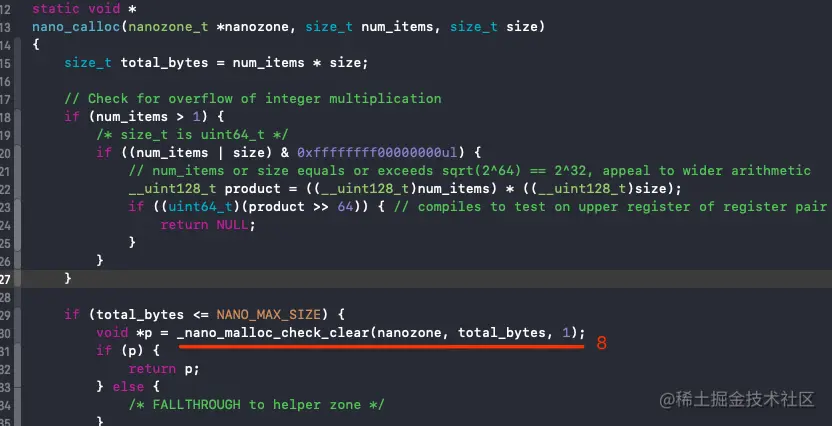 函数,在函数中可以看到起内存分配会最终调用 calloc