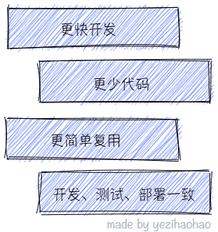 - 基于现有的模式去开发(一键安装,只需要管业务代码开发并且和平时开发是一致的编码方式,也不需要去学习和使用其他的框架),测试(和普通组件一样使用方式)和部署(仍然通过 Jenkins 自动化部署),实现基本零接入成本和零学习成本。