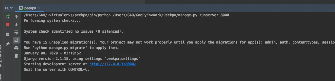 启动成功,会在Pycharm下面的终端里面出现这段话: