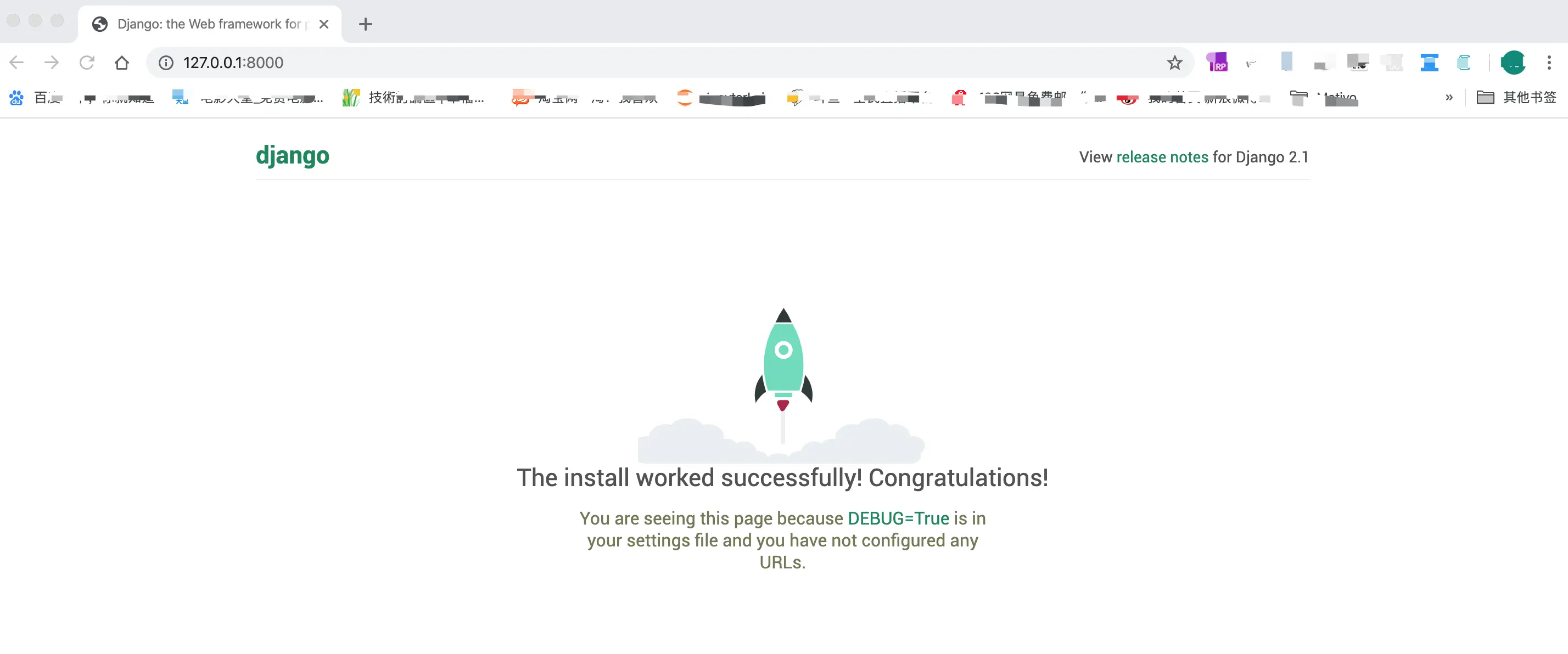http://127.0.0.1:8000/,就可以看到Django自带的默认界面: