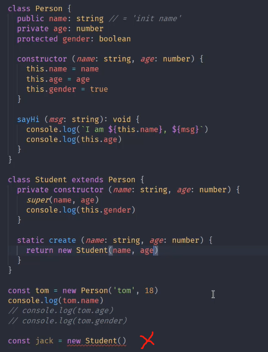// 如果constructor 是private声明了就不能在外部new这个对象了