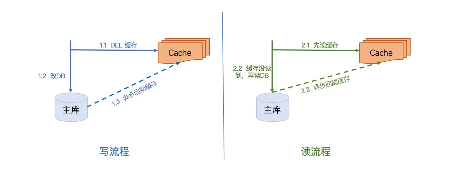 2.异步删除缓存(如果数据库是读写分离的,那么删除缓存时需要延迟删除,否则可能会在删除缓存时,从库还没有收到更新后的数据,其他读请求就去从库读到旧数据然后设置到缓存中。)