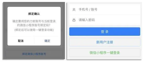 【小程序】支持将力软账号绑定小程序账号,使用微信/钉钉/支付宝账号即可一键登录。