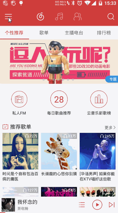 - 在交互效果上,我认为这两者都差不多的,就算你把 网易云音乐 的效果套到了 手Q 上,也不会影响到用户的交互