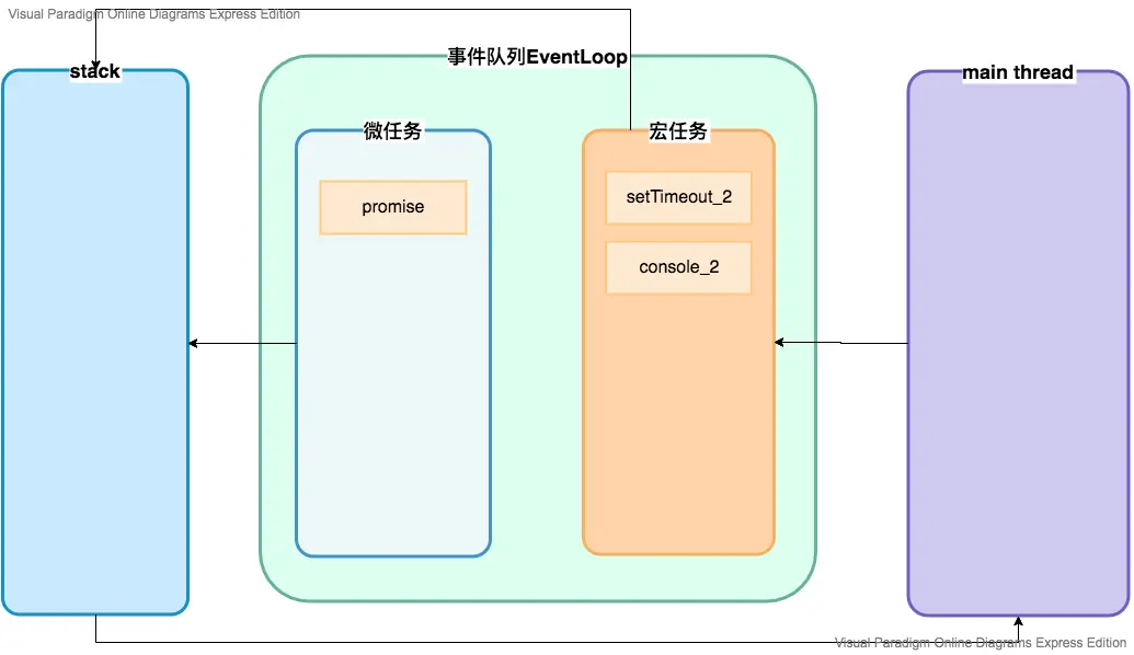 (3)eventLoop是一个单线程,不存在同时执行微任务和宏任务,且每次只取一个任务执行