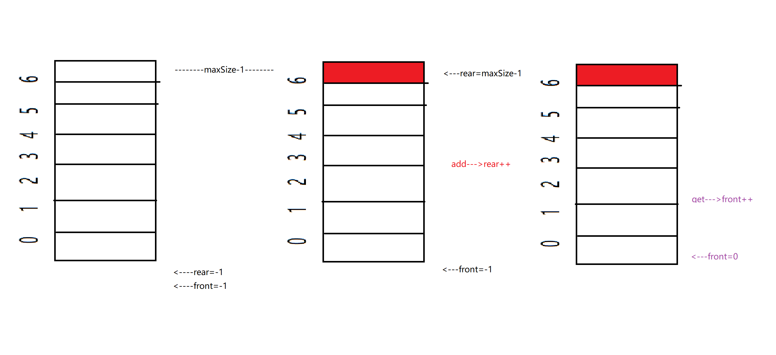 front=(front+1)%maxSize;