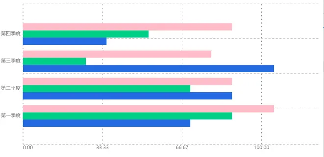 条形图使用水平的柱子显示类别之间的数值比较。其中一个轴表示需要对比的分类维度,另一个轴代表相应的数值。效果图如图所示: