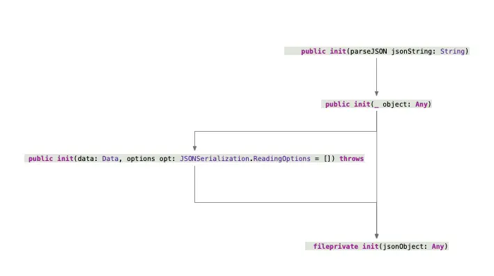 SwiftyJSON对外提供了三个初始化器,这三个初始化器都试图先将数据转换为Data,最终会来到fileprivate init(jsonObject: Any)方法中。