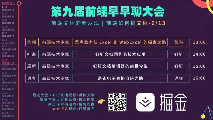 6 月 13 日举办第九届 - 前端如何搞文档,报名请戳:www.huodongxing.com/go/tl9 ,海报及讲师行程如下: