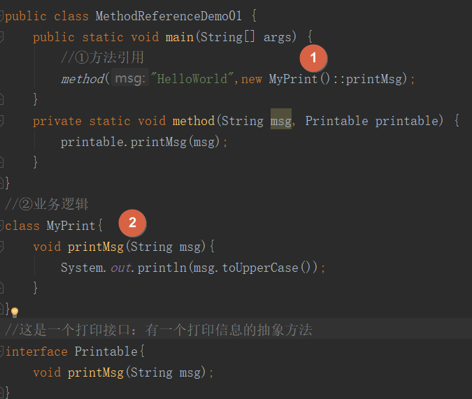 就可以理解成是MyPrint对象在调用printMsg方法。