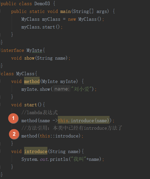 我们只看①而言,方法引用要比lambda表达式简单吧?