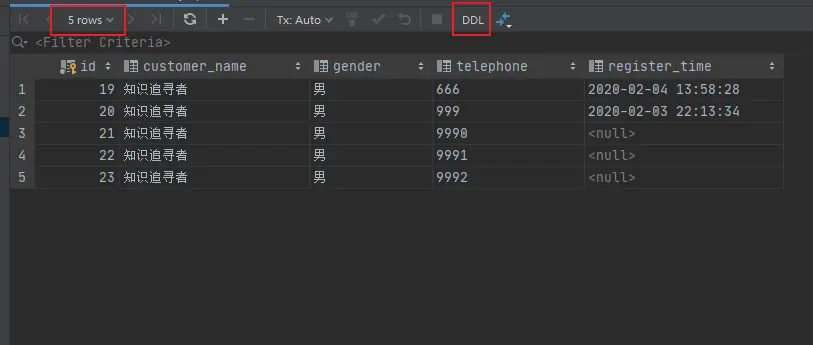 双击表名就可以看见表中的数据信息, DDL 也是表结构语句;