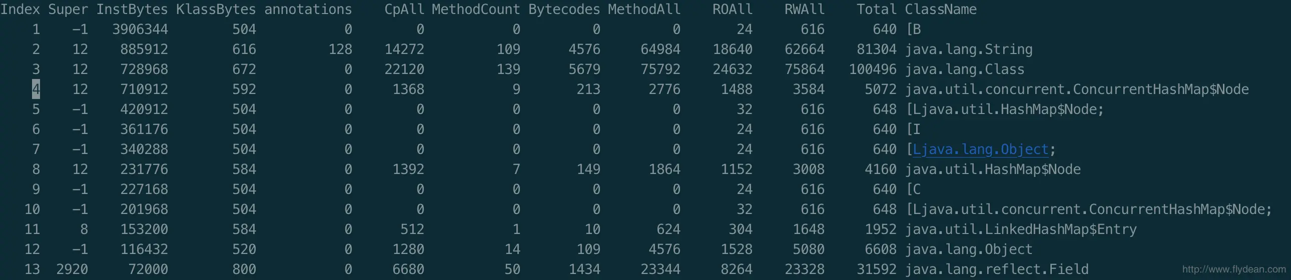 - CpAll - 每个class中constants, tags, cache, 和 operands的大小