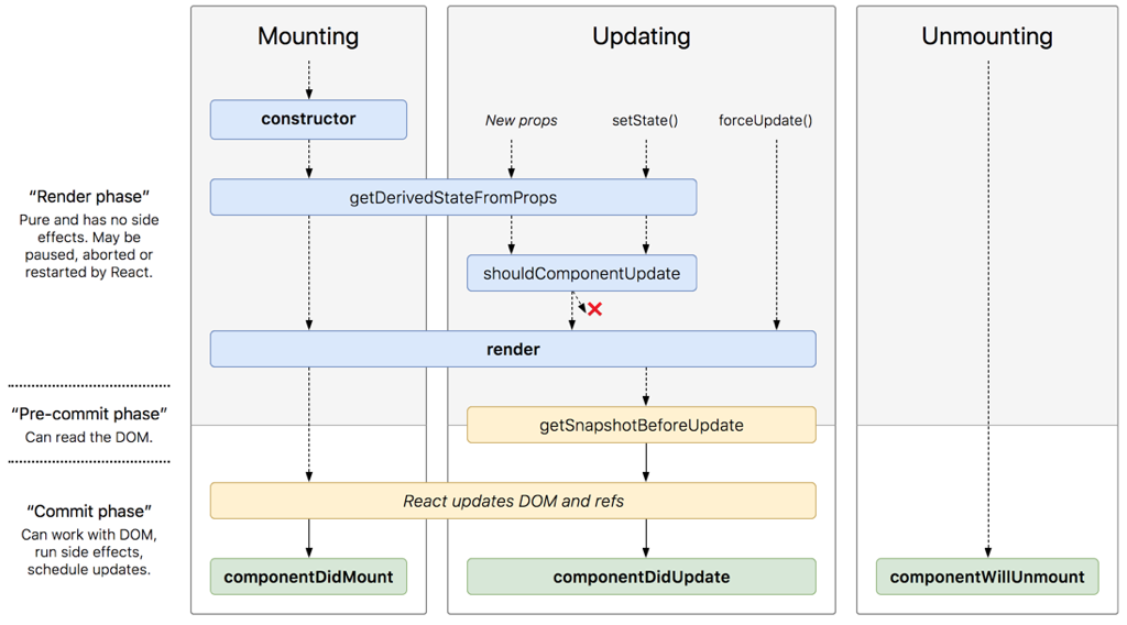 使用class组件的时候肯定要使用生命周期,那么请看下面的图片来回顾下react16新生命周期