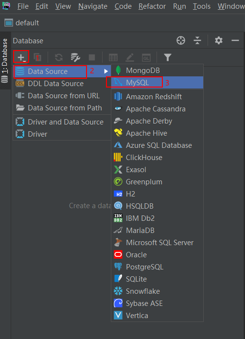 使用DataGrip操作数据库时,我们需要首先创建数据源。