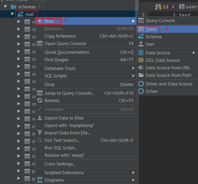 - 我们可以通过右键数据库名称,选择新建表;