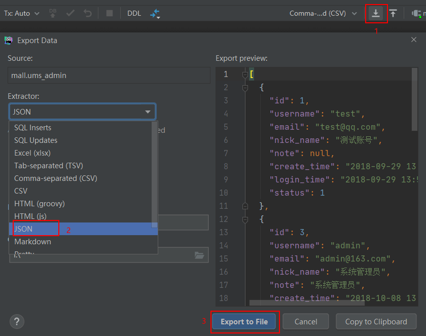 - 数据导出功能,可以将数据导出为CSV、Html、Excel、JSON等格式。