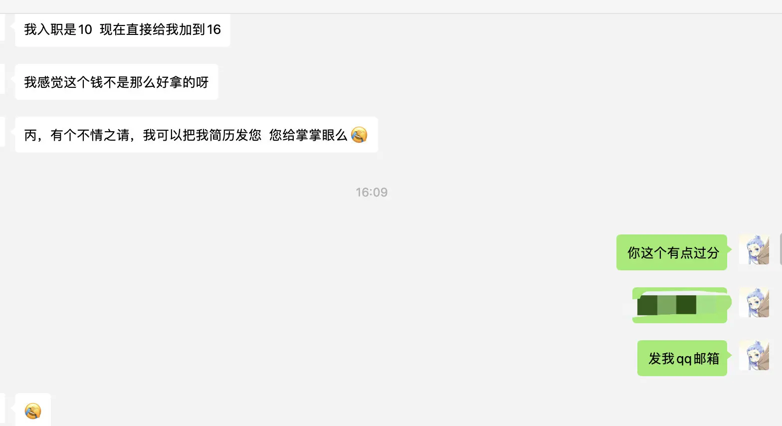 而且你是加了工资留下来的,你之前有些点没做好可能还好不怎么怪你,但是之后给你钱都涨了活还没干好,我觉得可能有点不太行.....