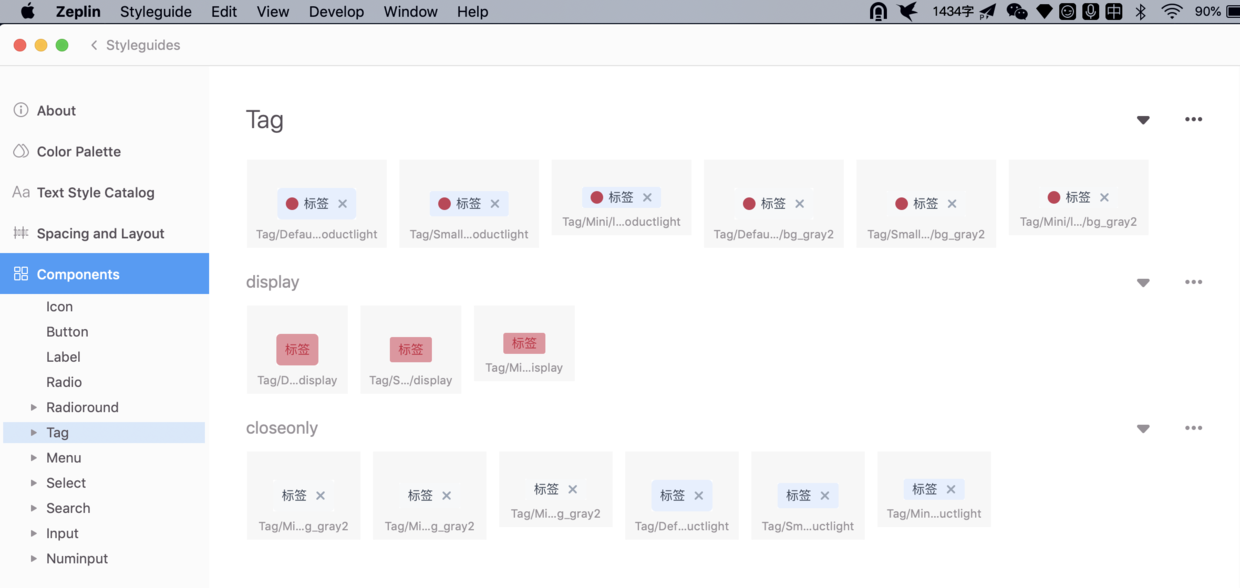 在zeplin的styleguide栏目下以树状结构来分类组件