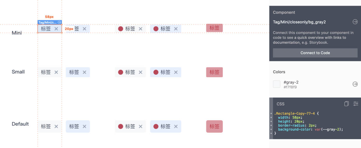 基于Sketch中的symbol功能,前端也需要将组件进行原子化,并根据symbol的变量命名将常用的大小、颜色创建为变量。