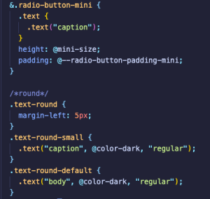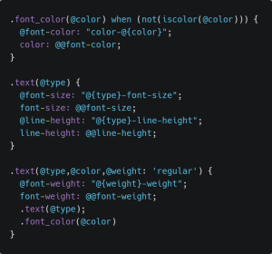 除此之外,我们利用less的mixins特性封装了文字样式混合,可通过传参编译成相应代码,从而减少重复代码并且方便开发使用。