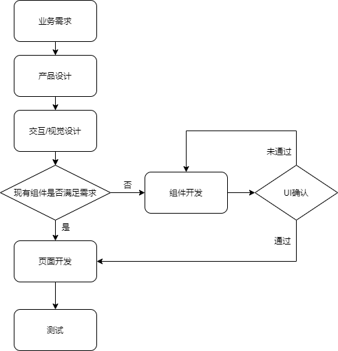 最终,我们希望能够搭建起 产品/UI/前端 三方高效的协作流程,如下所示: