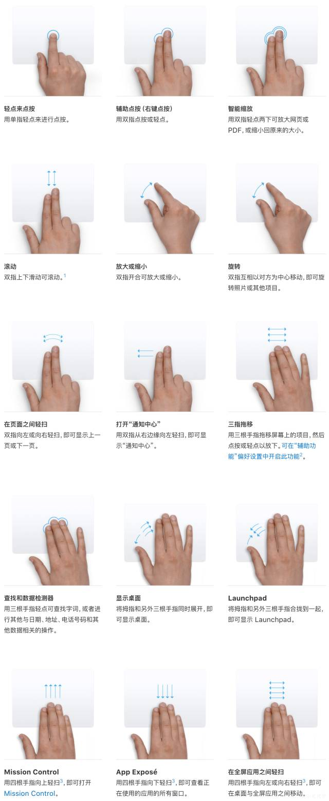 使用多点触控触控板或鼠标(不建议),您可以通过轻点、轻扫、捏合或开合一根或多根手指进行有用的操作。