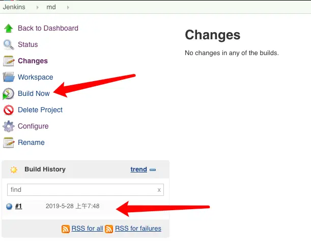 保存后,点击Build Now进行部署,jenkins会自动去git版本库中抽取最新的master分支进行部署,同时每部署一次的历史记录都会被保存下来