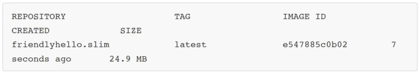 你自己试试,看看能减下来多少。在我的个人项目中,我发现它在大多数情况下都适用。你可以从其文档中了解更多关于 docker-slim 的信息: