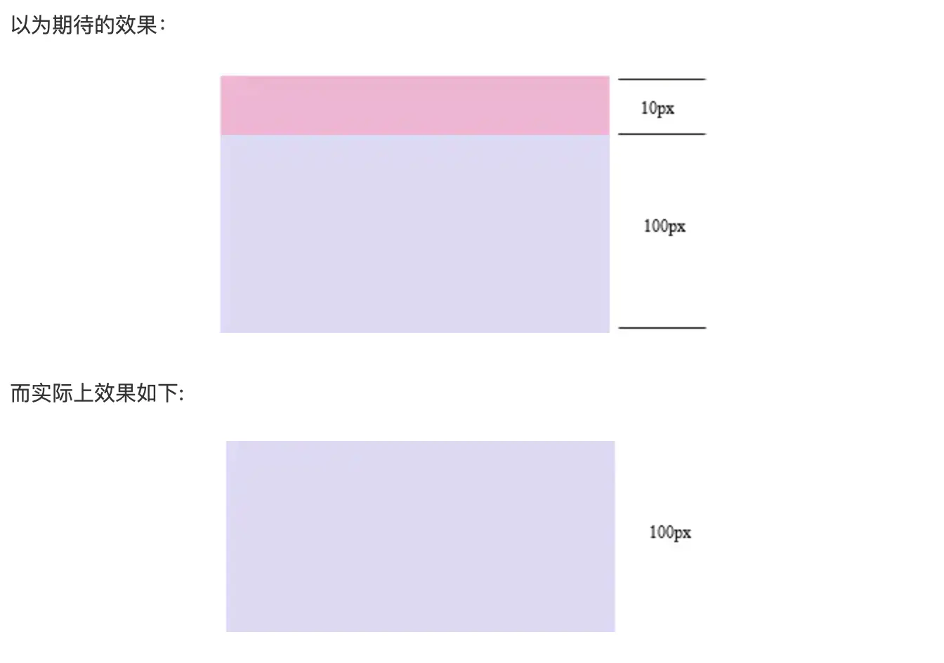 假设有一个空元素,它有外边距,但是没有边框或填充。在这种情况下,上外边距与下外边距就碰到了一起,它们会发生合并: