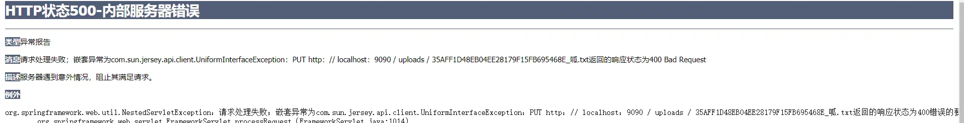 选择要上传的文件名为英文或数字是成功,但文件名为中文会报错: