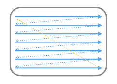 经过 GPU 处理之后的像素集合,也就是位图,会被帧缓冲器缓存起来,供之后的显示使用。显示器的电子束会从屏幕的左上角开始逐行扫描,屏幕上的每个点的图像信息都从帧缓冲器中的位图进行读取,在屏幕上对应地显示。扫描的流程如下图所示: