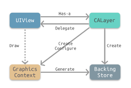 而从 CALayer 的官方文档中我们可以看出,CALayer 的主要职责是管理内部的可视内容,这也和我们前文所讲的内容吻合。当我们创建一个 UIView 的时候,UIView 会自动创建一个 CALayer,为自身提供存储 bitmap 的地方(也就是前文说的 backing store),并将自身固定设置为 CALayer 的代理。
