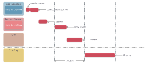 电子束扫描的过程中,屏幕就能呈现出对应的结果,每次整个屏幕被扫描完一次后,就相当于呈现了一帧完整的图像。屏幕不断地刷新,不停呈现新的帧,就能呈现出连续的影像。而这个屏幕刷新的频率,就是帧率(Frame per Second,FPS)。由于人眼的视觉暂留效应,当屏幕刷新频率足够高时(FPS 通常是 50 到 60 左右),就能让画面看起来是连续而流畅的。对于 iOS 而言,app 应该尽量保证 60 FPS 才是最好的体验。