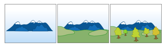图层的叠加绘制大概遵循“画家算法”,在这种算法下会按层绘制,首先绘制距离较远的场景,然后用绘制距离较近的场景覆盖较远的部分。