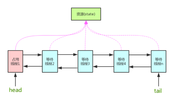 AQS 是一个双向队列,内部通过 head 和 tail 记录队首和队尾元素。