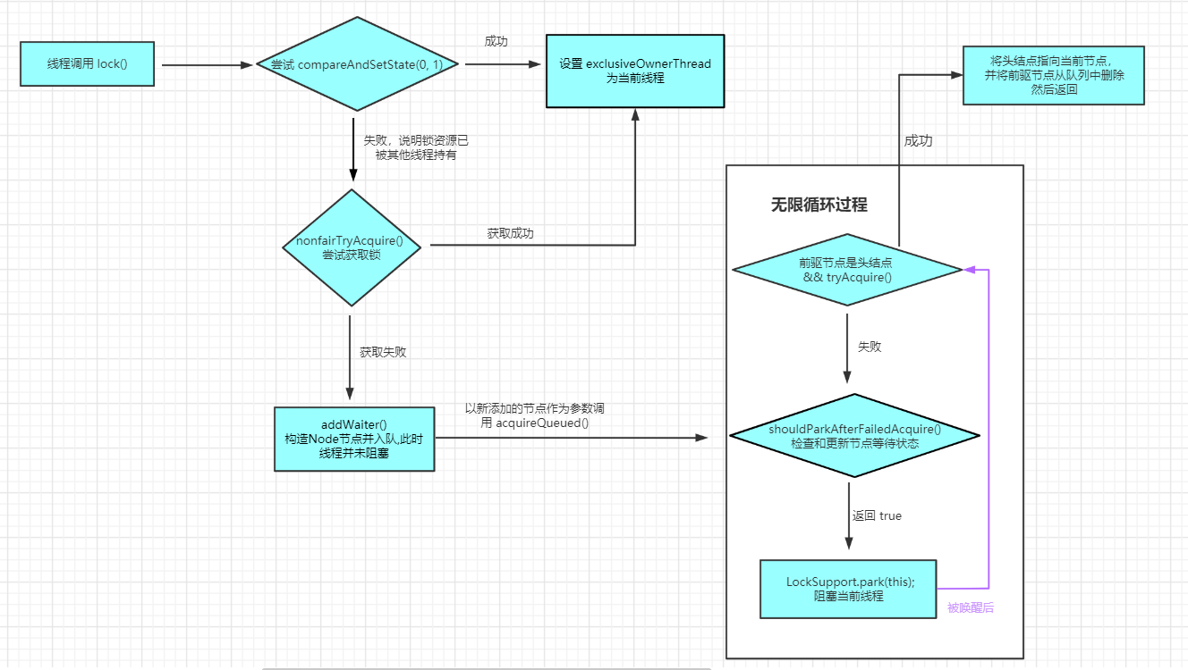 从 acquireQueued() 中可以看出,线程被唤醒后不一定能获取锁,还得再次竞争,这就是非公平的体现。