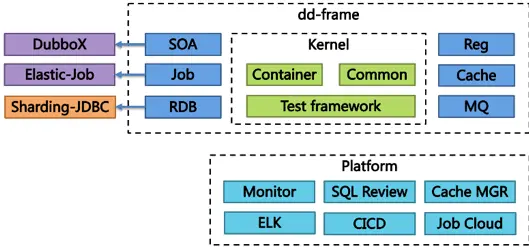 值得一提的是,除了 Sharding-JDBC,dd-frame 中还开源了另外的两个项目——DubboX 与 Elastic-Job。