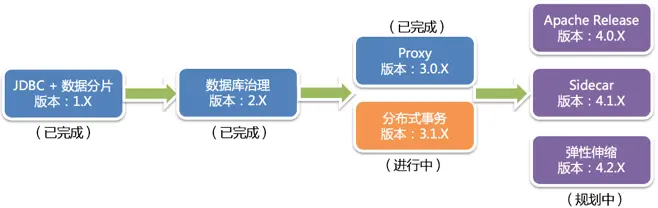 ShardingSphere 目前仍在快速发展中,图 4 描述了 ShardingSphere 的详尽演进路线。