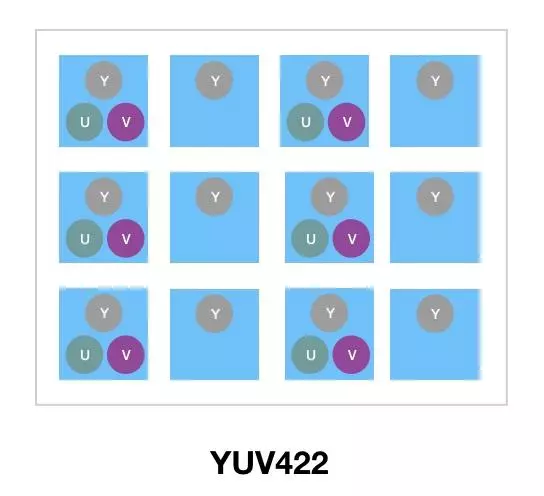 YUV 4:2:2采样,每两个Y共用一组UV分量。